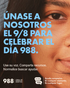 En el Día 988, invitamos a todos a ayudar a ampliar este recurso fundamental. En las próximas semanas, vamos a [compartir, invitar, planear… escriba aquí lo que esté organizando para el Día 988].Esperamos crear un #988Day memorable con todos ustedes.