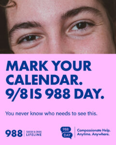 On 988 Day, we’re inviting everyone to help amplify this critical resource. Over the coming weeks, we’ll [share, invite, plan …fill in with what you are planning for 988 Day].